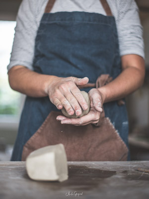Si tu débutes en céramique, commence avec des poids de terre entre 500 g et 600 g. Avec moins de terre, tu auras du mal à ressentir les mouvements. Avec plus, la terre sera plus difficile à canaliser.