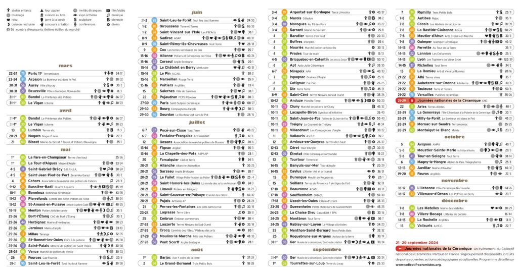 Les marchés de potiers sont des évènements majeurs de la céramique. Ils fédèrent autour d’eux une grande communauté de céramistes. Ce sont de véritables lieux de rencontres et d’échanges, où solidarité et bienveillance sont les mots d’ordre.