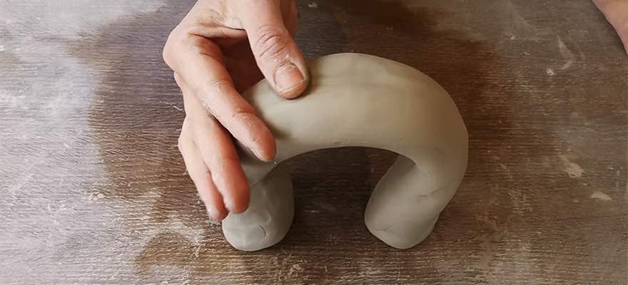Pour vérifier la plasticité des argiles, on prélève une petite boule de terre pour façonner un rouleau que l’on recourbe en arc. Si le rouleau se fendille lorsqu’on le recourbe en arc, cela prouve que la terre n’est pas assez plastique pour être tournée.