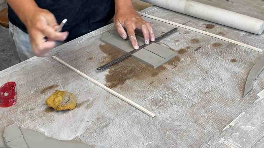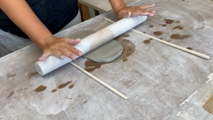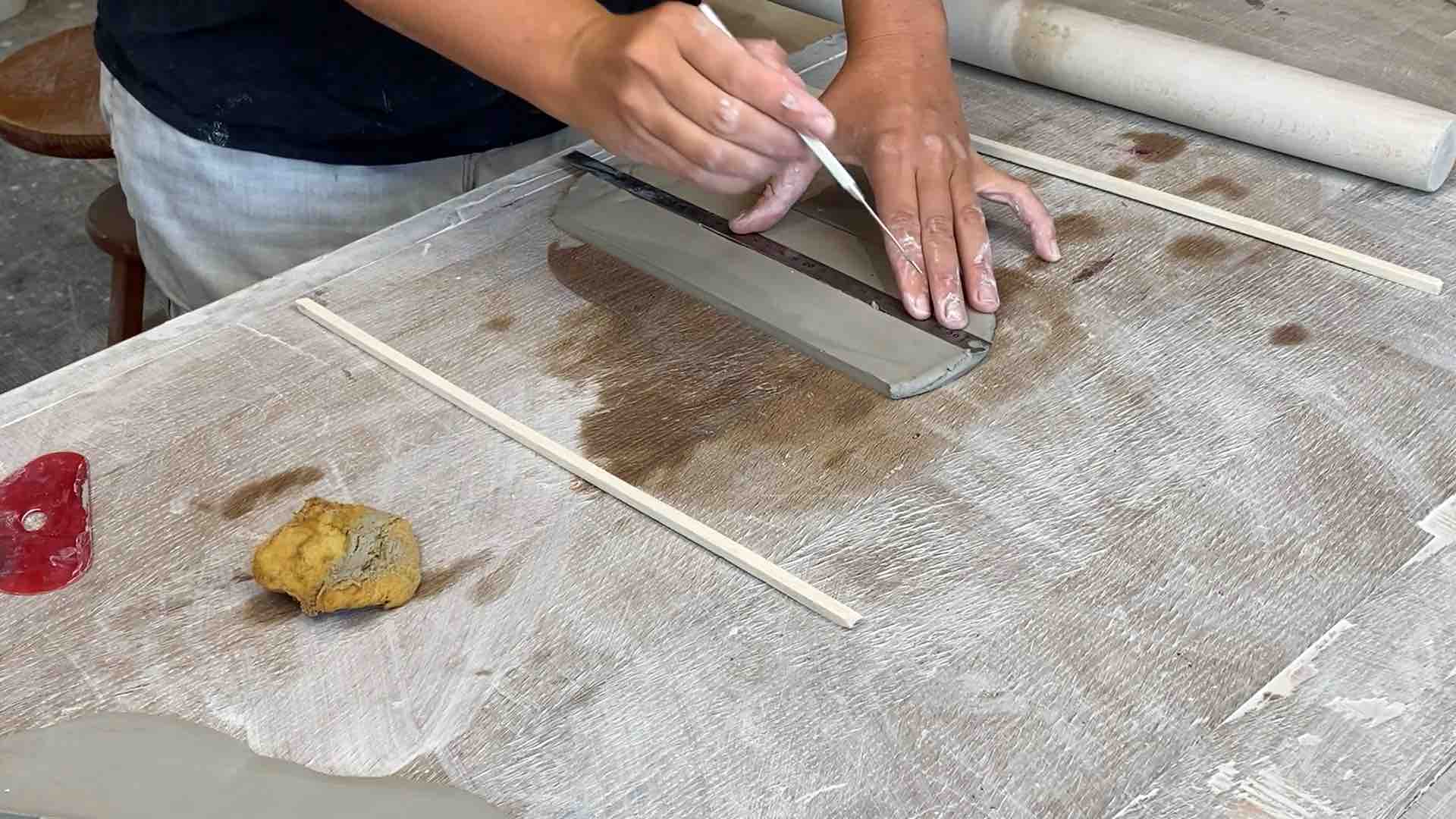 - Aplatis la terre entre 2 tasseaux afin que l’épaisseur soit constante